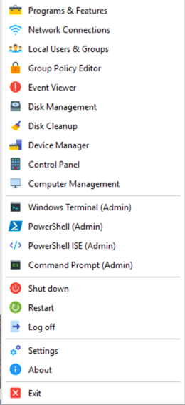 WinTray is flexible by design. You can add up to 100 custom executables to the menu, placing your own tools one click away. All built‑in administrative entries can be shown or hidden individually, so the menu stays focused on exactly what you use and nothing you don’t.