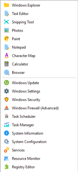 It began with a simple idea: make Windows Explorer available with a single click, wherever you are and whatever you’re doing. That small convenience grew into a clean, organized launcher for dozens of everyday and administrative tools.